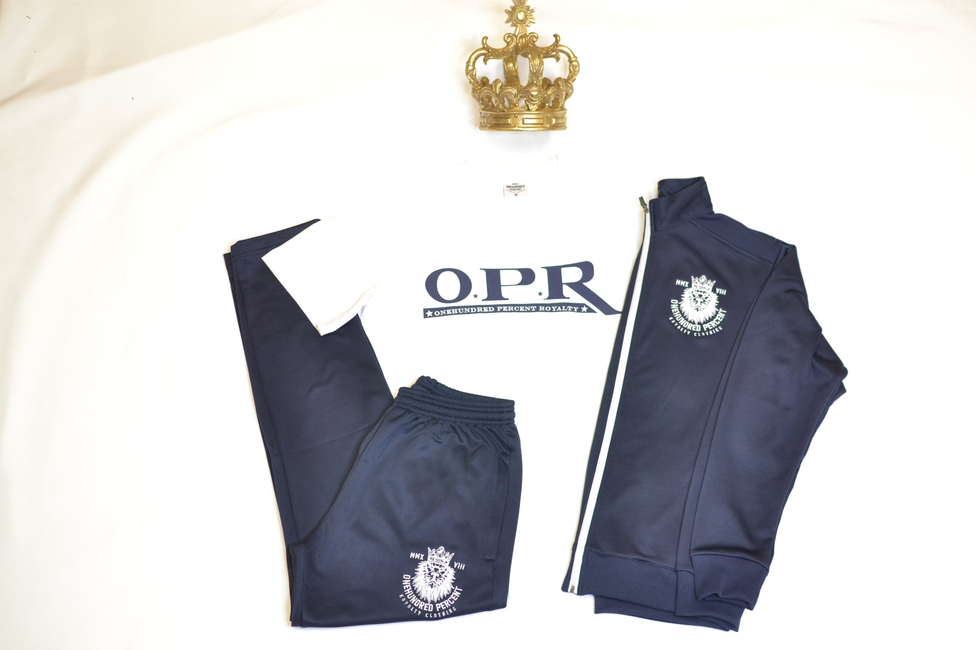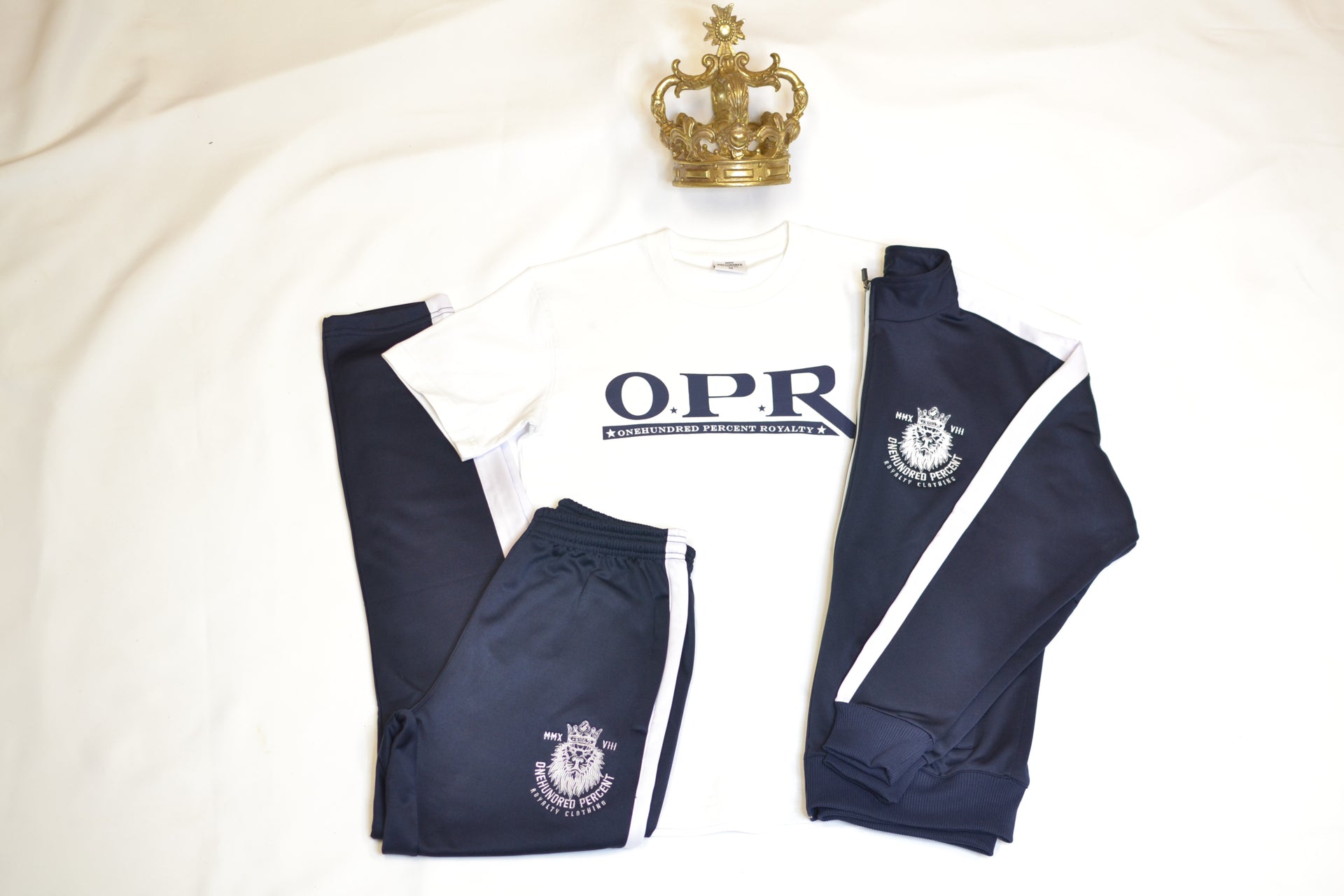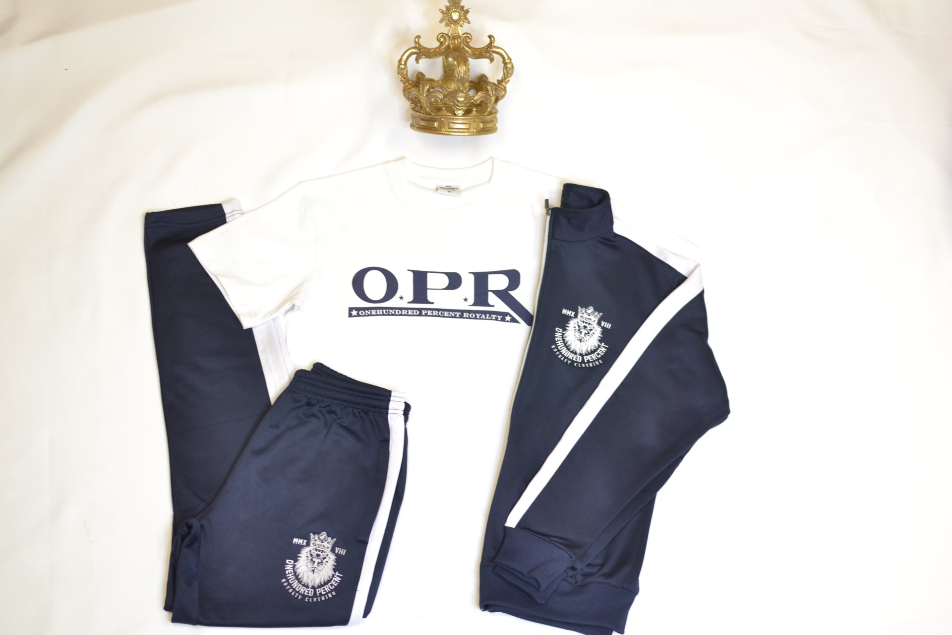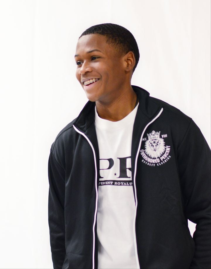 Experience premium athletic wear with our signature 100% Royalty tracksuit. Crafted for both performance and style, this tracksuit features: